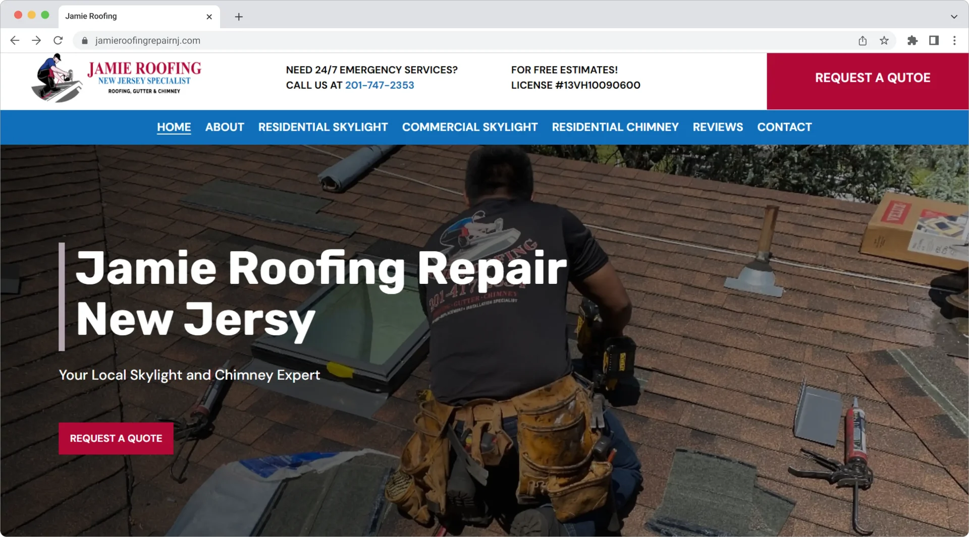 Jamie Roofing Repair NJ wanted a modern, user-friendly website that would make it easier for clients to request quotes and access 24/7 emergency services while showcasing their expertise in skylight and chimney repairs.